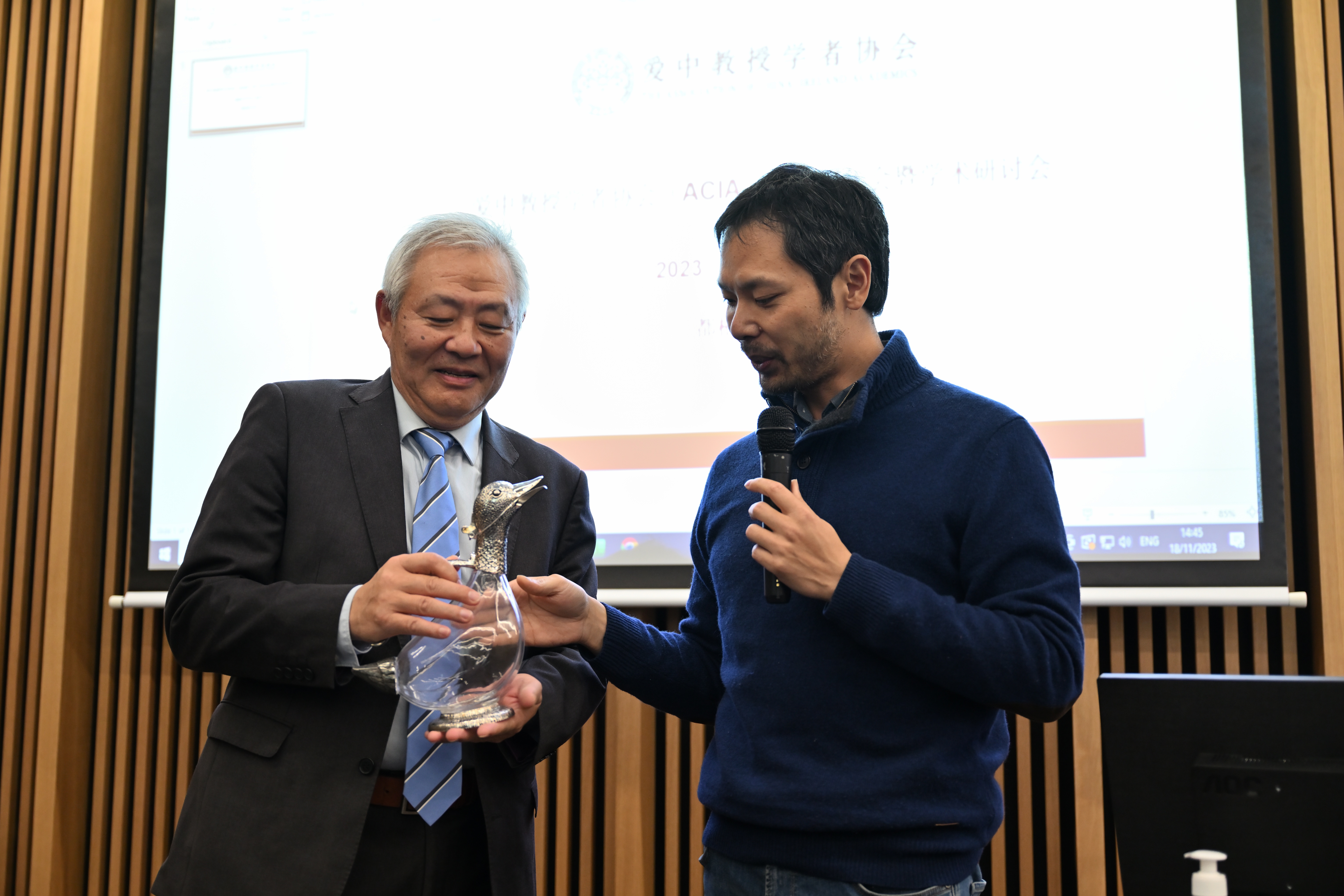 改选工作结束后,理事会为协会创始人吴兵教授、第二任会长汪江淮教授和第三任会长张朝生教授颁发了名誉会长证书。吕洲翔博士代表理事会为历任会长颁发了纪念品,并对他们为协会自创立以来所做出的贡献表示衷心感谢。