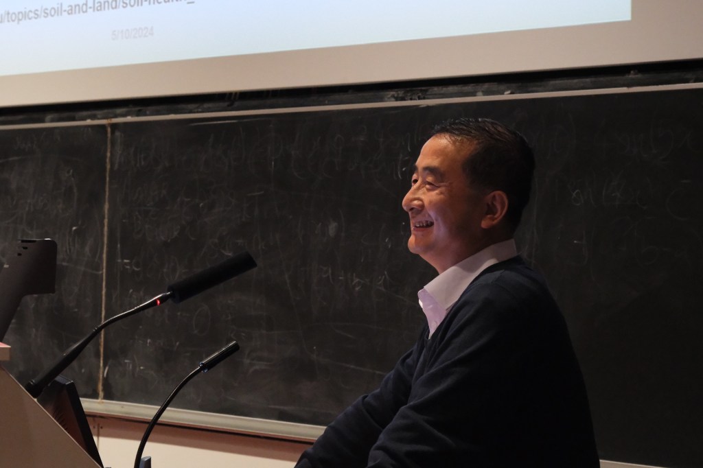 爱中教授学者协会名誉会长、爱尔兰国立戈尔韦大学国际环境与健康网络主任,张朝生教授做大会主题报告: ‘EU Soil Monitoring Law and Significance of Spatial Heterogeneity’